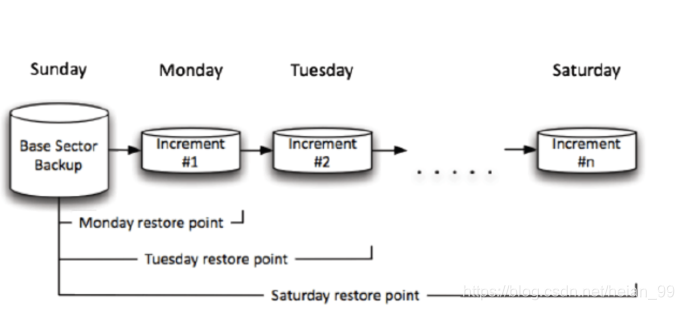 2、增量备份:周二 —— 周六
