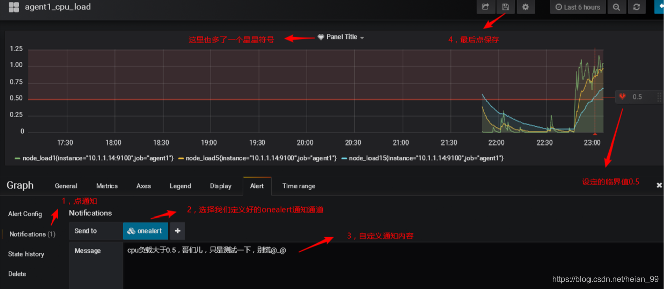如果node1上的cpu负载还没有到0.5,你可以试试0.1,或者运行一些程序 把node1负载调大。最终能测试报警成功