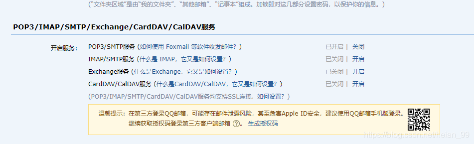 进入qq邮箱首页,点击设置>账户,然后找到下图截取的地方(需要设置的,如图)