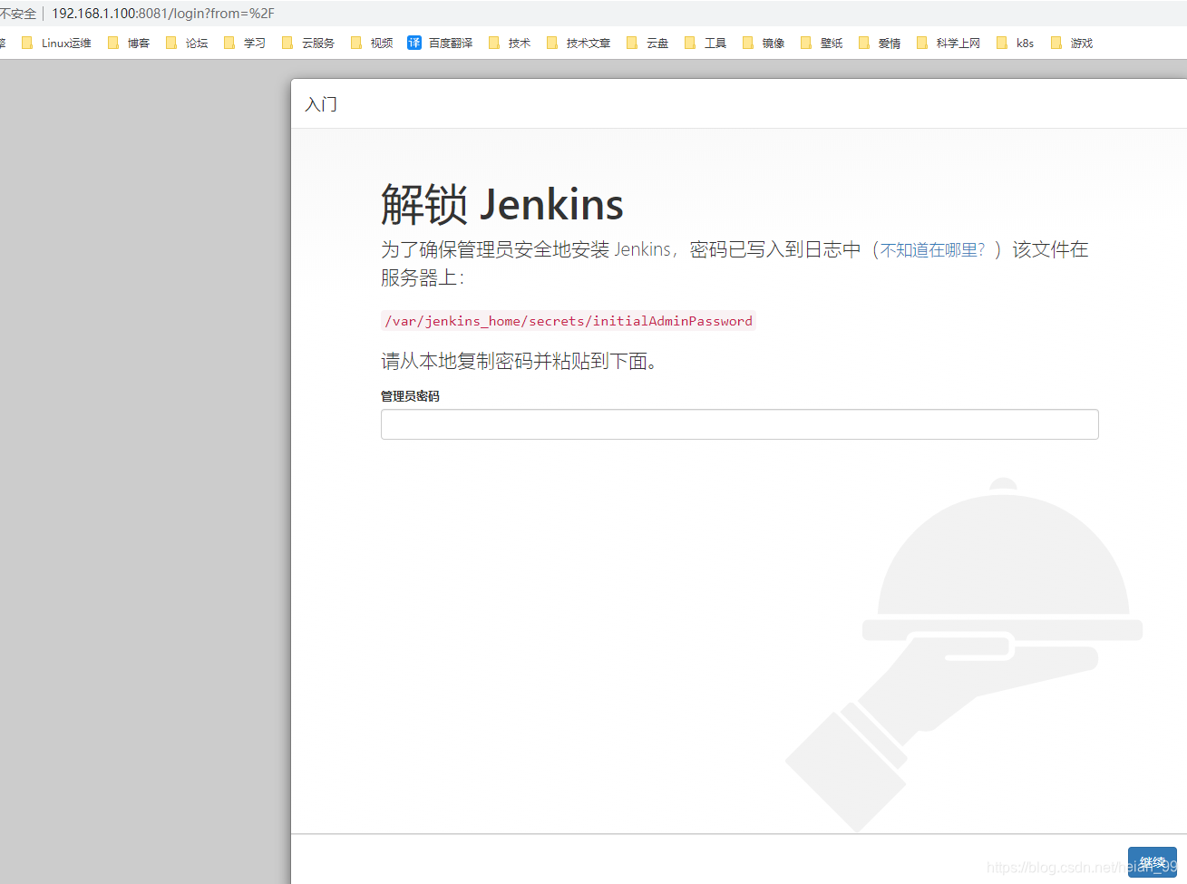 但是这样运行的话,可能jenkins会运行,但是会报错,因为jenkins_home的权限不够,导致无法写入数据。
